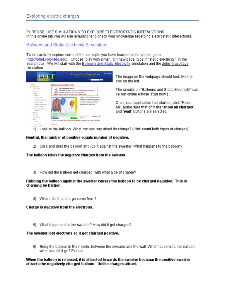 Balloon And Travoltage Answers Electric Charge Electrostatics