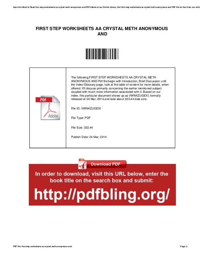First Step Worksheets Aa Crystal Meth Anonymous And