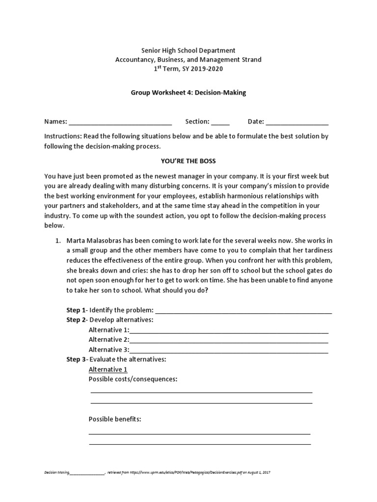 Decision making process worksheet