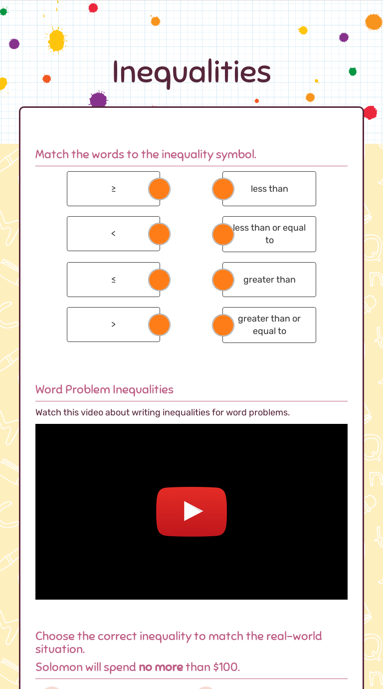 Inequalities Interactive Worksheet By Shaquetta Wilson