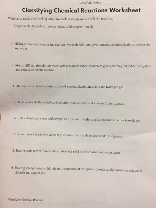 Types Of Chemical Reaction Worksheet