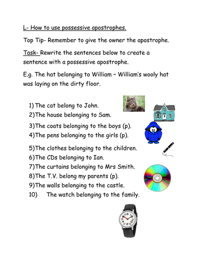 Possessive Apostrophe Worksheet Y4 Teaching Resources