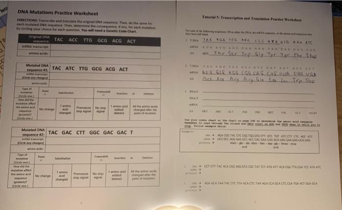 mRNA transcript: (Circle any changes) amino acids: Type of mutation 46+ Chromosomal Abnormalities Worksheet Answer Key PNG Showing top 8 worksheets in the category - Dna Mutations Practice Answer Key Sorts mutations genetic code lesson