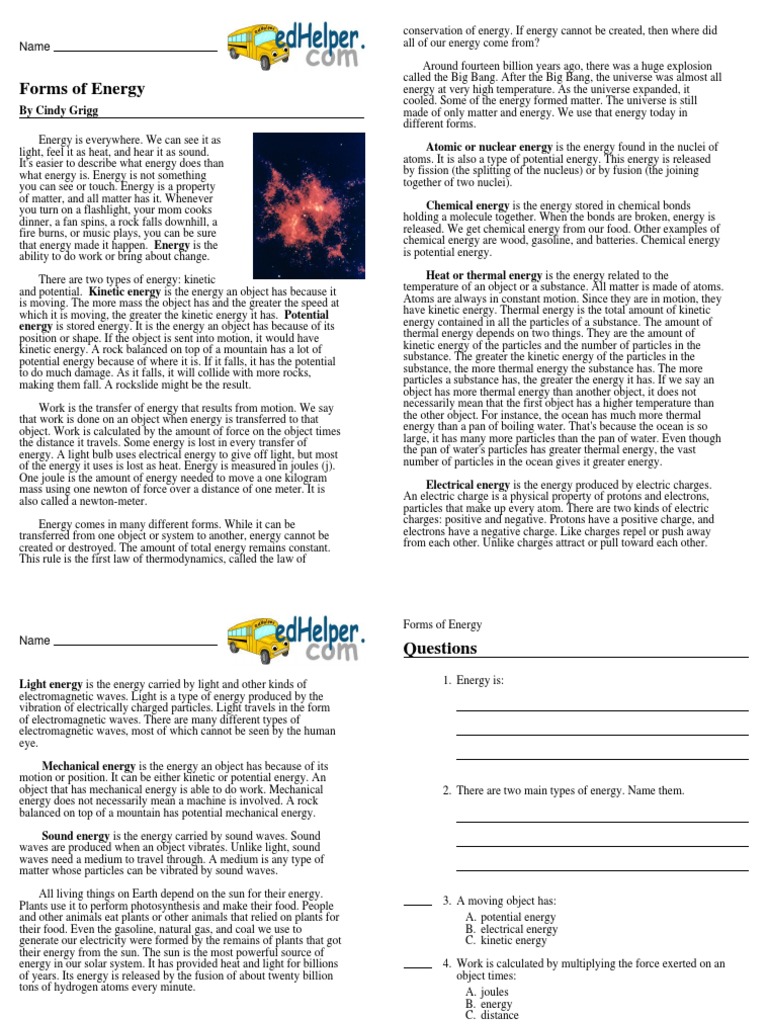 Free Assess Your Students Understanding Of Energy Forms With