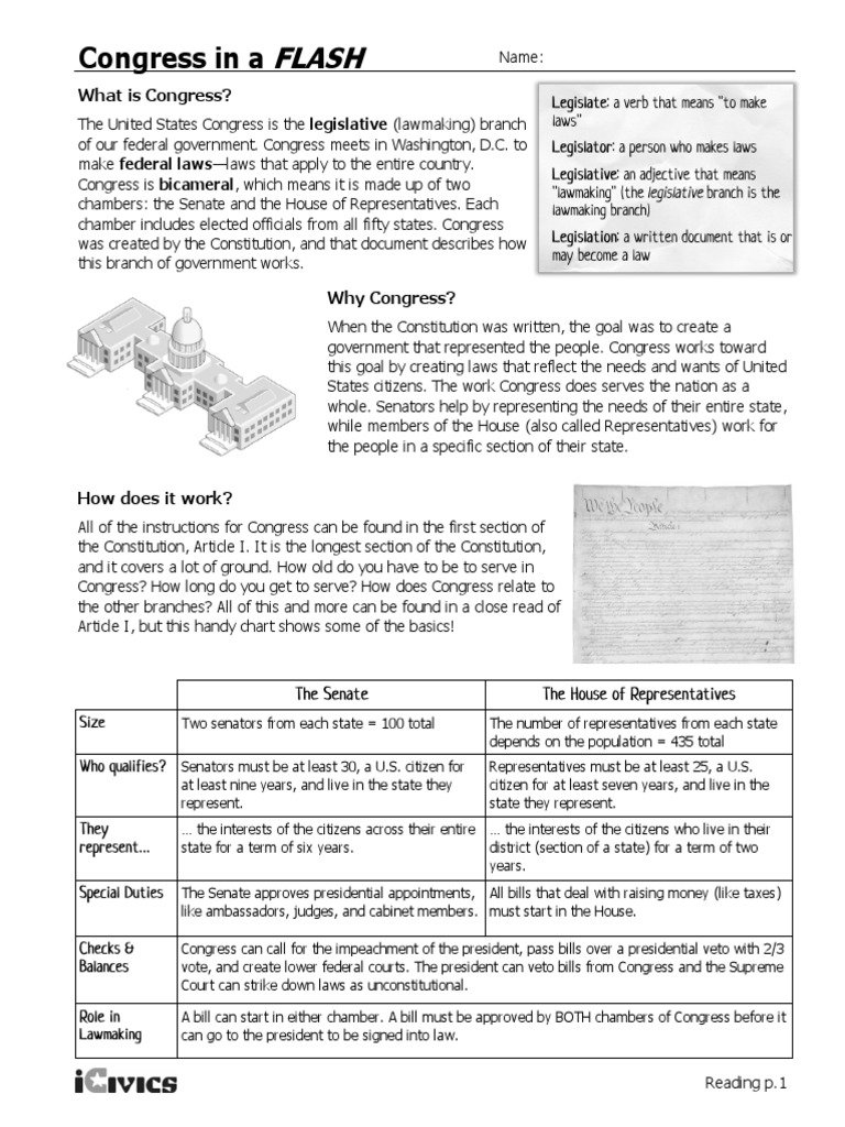 Congress In A Flash Lesson Plan Civics Renewal Network