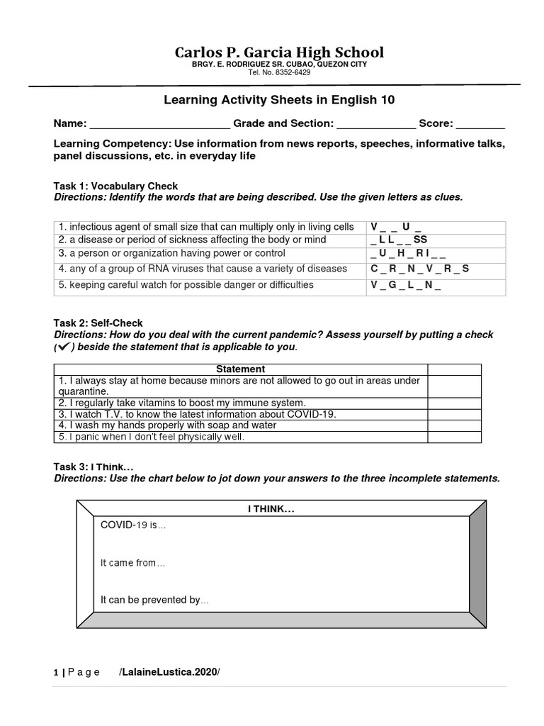 Eng10 Usinginfoindailylife Week1 Pdf Health Sciences