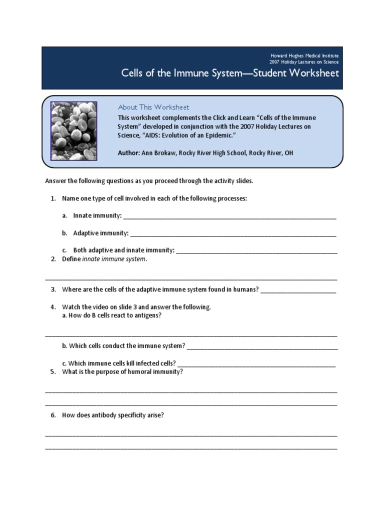 Immune system worksheet high school