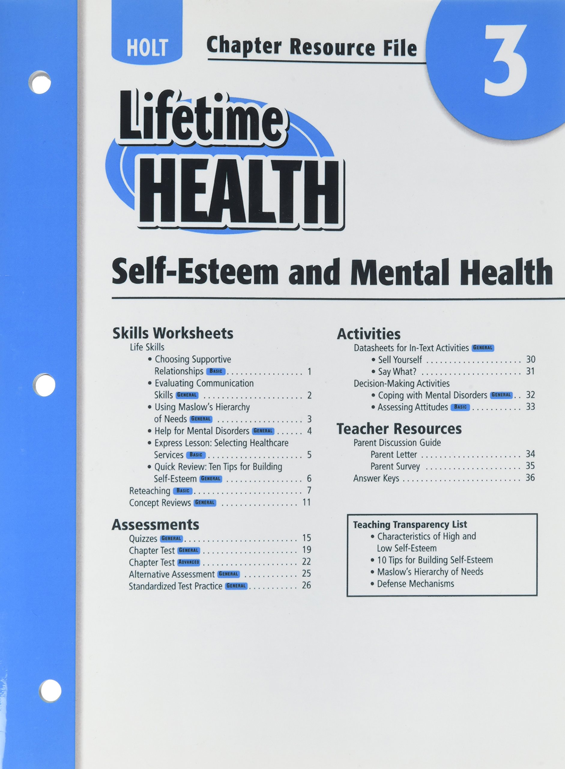 Buy Lifetime Health Chapter Resource File Chapter 3 Self