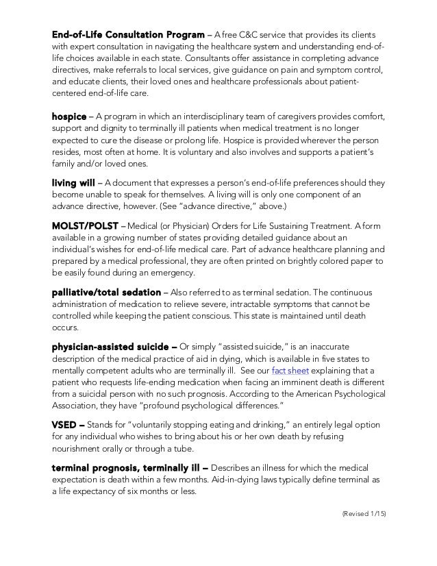Nolos Online Health Care Directive Prepare for Your Care Regents of the University of California offers this Advance Health Care Directive worksheet for CA … The Values History A Worksheet for Advanced Directives Glossary 1 Cardiopulmonary Resuscitation CPR - A method used to resotre stopped breathing andor heartbeat 2 Do Not Resuscitate DNR - A doctor’s order which alerts other health care givers that the patient or family in consultation with the doctor does not want the patient to be given CPR An advanced directive is a general term to describe the legal documents that detail your wishes for your life care and belongings in the event something were to … Advance Directives Terminology Worksheet 1 A is a document that states who will get your money and property after you die 2 A is a legal document stating a person’s wishes regarding life-prolonging medical treatments 3 A document which allows you to appoint someone to make health care 1 - Team Member Worksheet 2 - Care Plan Template 3 - Activities of Daily Living 42221 - Healthcare Advance Directives for Solo Agers All handouts from … Non-VA Advance Directives Values Worksheet for Advance Care Planning Keywords What is advance care planning What is an advance directive AD How do I get started What do I do with the advance directive AD after I fill it out Non-VA Advance Directives Values Worksheet for Advance Care Planning Created Date 1232020 95957 AM Advance directives are especially useful in medical emergency situations or near the end of a persons life There are two main types of advance directives the … Advance Directives in health care and nursing are the main topics of this quiz and worksheet combo You can find questions asking about the main purpose of an Advance Directive as well as Advanced directives ensure your wishes are carried out in the event youre incapacitated They also protect any proxies you may designate to speak for you A durable … better understanding advance care planning and related topics such as hospice and palliative care caregiving cognitive impairment and legal issues While extensive this list is by no means exhaustive and other quality resources are also available Guidance on Completing an Advance Directive Caring Conversations Workbook However its most common for people to use the term advance health care directive when referring to a document that lists the medical treatments a person does … CPT Code 99497- Advance care planning including the explanation and discussion of advance directives such as standard forms with completion of such forms when performed by the physician or other qualified health care professional first 30 minutes face-to-face with the patient family members andor surrogate 2-033 Advance Crisis Plan Advance Directive Advance Directives - Planning for Medical Care in the Event of Loss of Decision-Making Ability Geller … Advance directive is the general term that refers to the various documents that could include a living will instruction directive health care proxy or health care power of attorney A living will or instruction directive alerts medical professionals and your family to the treatments you want to receive or refuse In most states this Advance directive definition is - a legal document such as a living will signed by a competent person to provide guidance for medical and health-care decisions … Skills Review Worksheet For numbers 1 – 3 solve each equation 1 8x – 2 = –9 + 7x 2 12 = –4 are explained using undefined terms and or other defined terms Space is defined as a boundless three dimensional set of all points Space can contain lines and planes There are however better ways to explore advance directives before reaching this point A worksheet titled Alzheimers Disease and Dementia Mental Health … SAMPLE LANGUAGE FOR HEALTH CARE DIRECTIVES ESTATE ELDER LAW SERVICES 1900 Central Ave NE Suite 106 Minneapolis MN 55418 612-676-6300 Monica Lewis Attorney at Law 16 Decatastrophizing Tools Worksheets and Role-Plays Jeremy Sutton PhD 0 08-10-2020 In moments of panic we often assume the worst will happen However when … Advance directive An advance directive offers loved ones and medical professionals a road map for your health care A living will which is a type of advance directive explains the treatment you’d like to have should you ever be unable to speak for yourself In this section of your Emergency Binder you should also include instructions for accessing Wills Advanced Healthcare Directives and Power of Attorney … Living Will vs Advance Directives As you can see an advance directive includes anywhere from one to five separate documents with related instructions about … Palco Payroll Information Worksheet W-2 Employees Withholding Certificate for 2021 COVID-19 Information for DD Providers - Form January 26 2021 W-2 Employees … Estate planning is about more than writing a will by Brette Sember JD updated August 16 2021 · 3 min read A comprehensive estate plan includes four estate planning … There are a few terms used to describe the healthcare directive in Florida two of which are medical directive and advance directive or any combination … Youre there for your community Were here for you NHPCO provides its members with the essential tools they need to stay current with leading practices understand … NLM Value Set Authority Center VSAC The VSAC is a repository and authoring tool for public value sets created by external programs Value sets are lists of codes and … When youre feeling down consider repeating any or all of these affirmations to help you get through 1 In my grief I have changed When youre grieving its … Address substance use issues among AIAN youth through 10 youth treatment centers across the nation Promotes AIAN research works with tribal communities to identify … Advance Directive CHECKLIST A simple guide to help prepare your clients Advance Directive or to help your clients prepare for any similar conversation