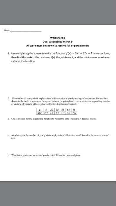 Complete the square to vertex form worksheet Problem 1: Write the following quadratic function in the summit form and draw the parable.yã, = Ã, x2a - 4x + 3problem 2: write the following quadratic function in the form of a summit and draw the parable.yã, = Ã, 2x2a - 8x + 9 detailed keyword answer 1: write the following quadratic function in the summit form and draw the parable.yã, = Ã, x2a -