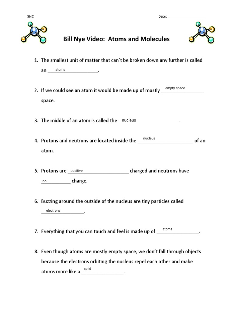 Bill Nye Atoms And Molecules Worksheet Answer Sheet A Nursing Student Tips Bill Nye Science Worksheets