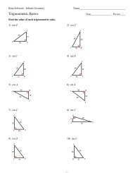 M Worksheet by Kuta Software LLC Kuta Software - Infinite Geometry Name Trigonometric Ratios Date Period Find the value of each trigonometric … Benefits of Trigonometric Ratios Worksheets Trigonometry is widely used in day-to-day applications By solving Trigonometric ratios worksheets youll understand … Solving trigonometry ratios 1 A B C 50 65 82 2 82 Z X Y 54 72 90 3 4 Q R P 97 77 59 5 U V W 63 46 78 6 T R S 65 72 97 sin A= = 65 sin X = = 54 90 sin M= = … ©4 4280W1A4b 6K 6ujt xaR ySuoZf8tkwUazrGeJ rLRLvC Gk q 5Anlkln lr 7i 3g5hCt ps K Or5eNsMeJr 5vce td T3 Right Triangle Trigonometry Find the value of each … Geometry trigonometric ratios worksheet answers The angle of elevation of the top of the building at a distance of 50 m from its foot on a horizontal plane is found … Trigonometry Ratios Worksheets Worksheets for 4th grade 5th grade 6th grade 7th grade and middle school These trig ratio worksheets feature exercises to identify the legs side and angles introduce the six trigonometric ratios find the indicated sides and much … Title Geometry Worksheet -- Calculating Angle Values Using Trigonometric Ratios Author Math-Drillscom -- Free Math Worksheets Subject Geometry Title Geometry Worksheet -- Calculating Angle and Side Values Using Trigonometric Ratios Author Math-Drillscom -- Free Math Worksheets Subject Welcome to The Calculating Side Values Using Trigonometric Ratios A Math Worksheet from the Geometry Worksheets Page at Math-Drillscom This math …
