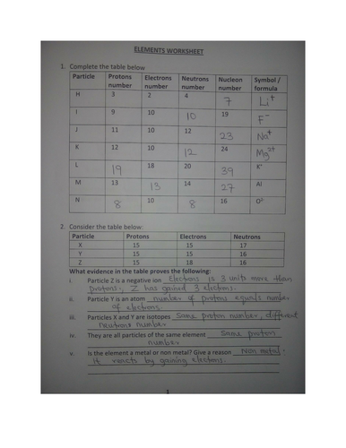 Elements and their properties worksheet answers