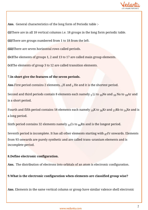 The elements in a group have similarities in the electronic configuration of their atoms, and thus they exhibit somewhat related physical and chemical properties (b) 18 group Question 3
