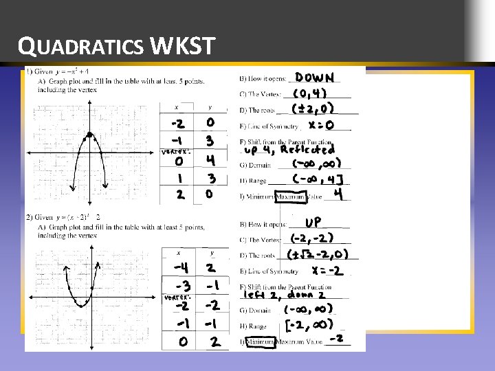 Quadratic transformation worksheet answers
