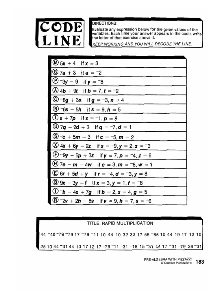 34 Pre Algebra With Pizzazz Worksheet Answers