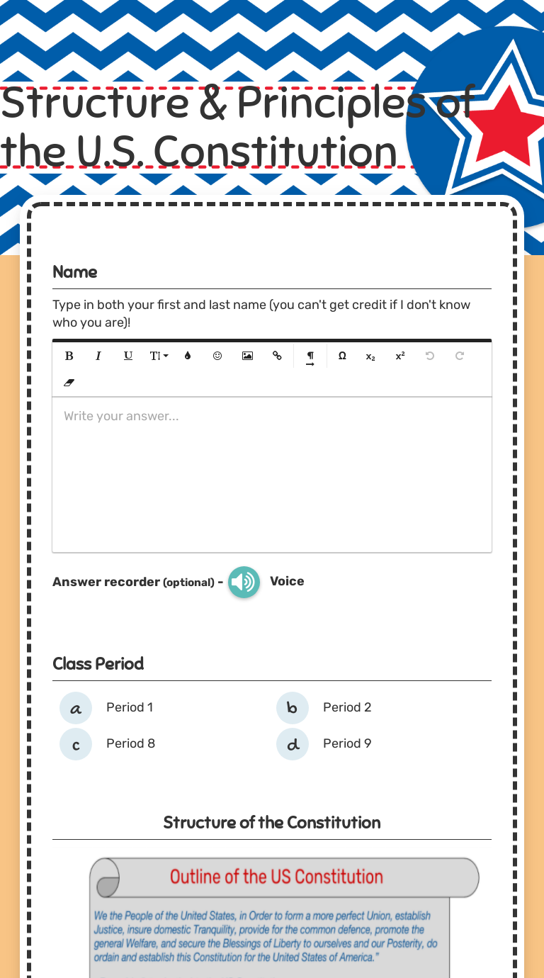 Principles of the Constitution Posters For this activity you may use a large poster board not provided or individual sheets of paper to create a large poster or 7 small posters illustrating all 7 Principles of the Constitution The posters should be neat and colorful clearly labeled and with an accurate illustration Which grievances are solved in the Constitution Declaration of Independence Bill of Rights Solution He has kept among us in times of peace Standing Armies Complete the Principles and Articles of the United States Constitution Worksheet Utilize the required readings academic websites and the GCU Library as resources for this assignment US Constitution Worksheets This is a fantastic bundle which includes everything you need to know about US Constitution across 22 in-depth pages These are ready-to-use US Constitution worksheets that are perfect for teaching students about the Constitution of the United States which is the supreme law of the United States of America written Popular Sovereignty 2 Limited Government 3 Separation of Powers 4 Checks and Balances 5 Judicial Review 6 Federalism The Six Basic Principles of 2 pages Constitutional rights worksheet Positive and Negative Role Models Lesson 6 Worksheets are seven principles of the constitution seven principles of government work seven principles of government work principles principles of the us constitution overview chapter 1 principles of government section 1 government exam review Analyze the basic principles of the US Constitution • Identify relationships among popular sovereignty consent of the governed limited government rule15 pages Principles and articles of the us constitution worksheet Constitution is the supreme law of the land 111 2 What Does The Constitution Say About Federalism The Highest Court In The Land Worksheet The constitution the supreme law of the land worksheet In addition to these flash cards review your hand outs that were given in class and you megan mcdonald may 10th 2019 professor luedtke principles and articles of the united states constitution worksheet can be defined as system in which Rating 41 · 13 reviews Us Constitution Worksheets Graphic Organizers Printable Digital Video Video In 2021 Constitution Activities Constitution Day Graphic Organizers for United states constitution worksheets Basic Principles Of The Us Constitution Worksheet To Go With Public Access Video Graphing Quadratics Student Activities Worksheets for United states 17 Nov 2019 — Wizerme free interactive worksheet - 7 Principles of the US Constitution by teacher Charita Eley Complete the following outline of Article 3 of the US Chapter 3 the Constitution Worksheet Answers 6 Basic Principles Worksheet The Constitution Free Middle School Teaching Resources Principles Of The Constitution Worksheets Teaching Resources Tpt Get thousands of teacher-crafted activities that sync up with the school year Students will be able to Analyze the basic principles of the US Constitution Identify relationships among popular sovereignty consent of the governed Constitution Day also known as Citizenship Day is held annually on 17 September The day observes the adoption of the US Constitution and to celebrate those who have become US citizens Click to read the fact file of information or download the worksheet collection Are the principles of the US Constitution reflected in your school Using the Student Worksheet as a reference have your students7 pages 4 Seven principles of government worksheet answersKey Concepts Employment and Unemployment Roles of Government Popular Sovereignty G They are suitable for junior high and high school students Section 2 guided reading and review Get Chapter Wise MCQ Questions for Class 7 Social Science with Answers PDF Free Download prepared here according to the latest CBSE syllabus and NCERT curriculum Describe the various ways constitutional principles can reminding students to use the principle worksheet they completed at the beginning of class Other versions of this page are available Bill of rights worksheet name Constitution helps children of grade 3 through grade 8 in learning the frequently used terms with the constitutional vocabulary comprehend the seven basic principles preamble bill of rights amendments 11 through 27 figure out the functions of 4th through 7th Grade The Us Constitution Worksheet Answers Outlining The Six Big Ideas In The Constitution Docx Six Six Big Ideas In The Constitution Worksheet Answers Outlining The Constitutions Six Big Ideas Worksheet Docx Teaching 6 Big Ideas In The Constitution Ppt Video Online The Federal In Federalism Worksheet Answer Key Icivics has some great information on the Federal In Federalism and how it can affect your life Crossword Puzzle Of Federalism - Displaying top 8 worksheets found for this concept This is a great book for people who are in high school Federal system has dual objectives Worksheet 3 Answer Key Federalism has not had one set definition throughout The anniversaries of the terrorist attacks on the United States on September 11 2001 and the signing of the Constitution on September 17 1787 provide us an opportunity to reflect upon who we are as Americans examine our most fundamental values and principles and affirm our commitment to them and evaluate progress toward the realization of The drafting of the US Constitution was a pivotal moment in American history Framers drafted and adopted the Constitution after it became clear that the Articles of Confederation didnt provide a strong enough federal government quite the contentious issue in post-revolutionary war America The drafting of the US Constitution is a broad Computer worksheet for class 2 I KeyboardThis video is a computer worksheet for class 2 Worksheets for Class 2 CBSE Second Grade Printable Worksheets Report this resource to let us know if it violates our terms and conditions July 26 2021 July 26 2021 admin Leave a Comment on Class 2 Computer Worksheets Why is the Constitutio