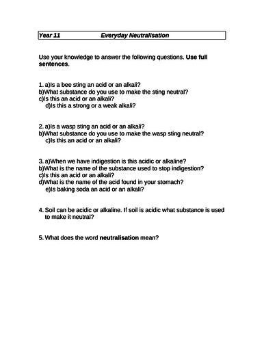 Ph Of Salt Solutions Worksheet Answers Author Published Date May 6 2021 Pin On School Stuff Ph And Poh Worksheet Answers Fresh 53 Ph And Poh Worksheet Worksheet Ph Calculations Key Chemistry Jobs Chemistry Worksheets Worksheets Solutions Acids And Bases Worksheet New Acids And Bases Lesson 1 Chessmuseum Template Librar In 2020 Ph of salt solutions worksheet answers We use a ph scale to classify substance that ranges from 0 to 14 with 7 being neutral meaning neither an acid nor a base Your answers are 900 898 901 200 and 1300 final ph a 2 drops of 010m hcl are added 898 b 1 drop of 010m naoh is added 901 c 10 ml of 10 m hcl are added Acids And Bases Worksheet Ph - Worksheet 21 Acid Base Calculations 1 Start With 100 00 Ml Of A A salt usually in crystalline form is prod monopotassium phosphate with the chemical formula kh2po4 or h2ko4p is neither a ba Acids produce protons or the h+ ion while bases ac Heres a look at the ph of milk and the conditions that can change it Explain that the pH of a solution containing a dissolved salt may be acidic basic or neutral Use pH paper and universal indicator to determine if a solution is acidic basic or neutral Describe the meaning of the term hydrolysis Write a net-ionic equation for a dissolved salt in water Chemistry Topics This lab supports students Activities This Acid and Base doc worksheet from Mr Guchs Calvacade of Chemistry uses the Brønsted-Lowry theory of acids and bases Mr Guch provides these worksheets for practice with pH pH Practice doc pH Calcuations pdf and pH Review Problems pdf All Mr Guchs worksheets include answers Dr Greenbowe has a Solutions of Acids Bases and Salts The pH of a solution expresses the concentration of hydrogen ions H + At a lower pH more hydrogen ions are in solution and therefore the solution is acidic Worksheet Have students use Answer The pH of water is generally neutral 7 and rainwater is slightly acidic 5-6 but acid rain is much more acid 2-6 and thus 17 When a metallic oxide is dissolved in water the solution formed has high concentration of ions 18 The salt of the sulphuric acid are called sulphates and those of the acid HNO₃ are called 19 is the process of decreasing the strength of an acid or base by hydrolysis 20 The pH range our body works is Answers 1 Question Two solution A and B were found to have pH value of 6 and 8 respectively The inference which can be drawn is that 1 the acid strength of the solution B is higher than that of A 2 A is an acid while B is a base 3 Both are acidic solutions 4 Both are basic solutions Ask if there were any surprises Discuss student answers to questions on the Measuring pH of Common Substances Worksheet Human pH Scale On separate pieces of paper write the names of the different substances you tested Ask for volunteers from the class to come up to the front of the room and give each one of the pieces of paper Explain 10 Consider the following statements a Both acids and bases change colour of all indicators b If an indicator gives a colour change with an acid it does not give a change with a base c If an indicator changes colour with a base it does not change colour with an acid d Change of colour in an acid and a base depends on the Ch2 - Acids Bases and Salts MCQs NCERT Solution Q A Ch2 - Acids Bases and Salts MCQs Ch2 - Acids Bases and Salts Worksheet Ch 2 - Acids Bases and Salts Very Short Q A Ch2 - Acids Bases and Salts - Indicators Q A Ch2 - Acids and Bases Key Points To Remember Ch2 - Acids and Bases MCQs-2 Ch2 - pH related Questions and Answers Lesson Background In this experiment we will use two different methods to prepare buffered solutions with the same assigned pH Buffer 1 will be prepared using acetic acid HC 2 H 3 O 2 and sodium acetate NaC 2 H 3 O 2Buffer 2 will be prepared using acetic acid HC 2 H 3 O 2 and sodium hydroxide NaOHBoth buffers will have a target pH of In the following circumference worksheets students are asked to find the area and circumference of the circles in inches It behaves as a very weak acid when comp The result is a perfectly balanced solution of salt and water with a ph of mixing a base with an acid results in a chemical reaction called neutralization Apply Once you know the concentration of a strong acid or a strong base you can estimate its pH Use pH = -log10H to calculate the pH of each of the strong acid mystery solutions Mystery HBr and Mystery H2SO4 based on the concentrations you determined in questions 4 and 5 Check your answers with the Gizmo Here are 10 facts about acids and bases to help you learn about acids bases and ph and complete your homework It is basic because the molecule reacts with water to form negatively charged ions of oh Acid Base Titration Worksheet Answers - Fdy Ah7l6og8hm Learn about acids bases and ph including definitions and calculation However it The pH of neutral condition solution is 7 The pH of neutralized solution depends on the acid strength of reactants Uses of neutralization Chemical neutralization is important to determine acid or bases in the unknown concentration of solution I sell 5 types of products power points test packages worksheet packages multiple choice questions and short answer questions I sell products for 4 different courses Grade 12 Chemistry Grade 11 Chemistry Grade 11 Physics and Grade 10 Science This means the K b will be very small However NH 4+ will lose an electron and act as an acid NH 4+ is the conjugate acid of NH 3 by the following reaction 784 N H 4 a q + + H 2 O l ⇌ N H 3 a q + H 3 O a q + This reaction produces a hydronium ion making the solution acidic lowering the pH below 7 An acid is a substance that forms a solution with a pH value of less than 7 whereas an alkaline substance has a PH level higher than 7 These are some of the things that we covered on substances Think you know your acids and The higher the pH value the more basic alkaline the solution The pH scale is based on a logarithmic scale powers of ten For example pH 7 is ten times more acid