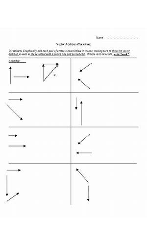 A double-sided PDF worksheet with questions and answers on Vectors. The worksheet has skill and mastery questions and a full marking grid so students have a gap-analysis of what they understand and what they need to improve. Suitable for higher GCSE. The download includes the Questions PDF and the Answers PDF.. Topics included:. Understanding Vector Basics. Vector Addition Worksheet. On a separate piece of paper, use the following individual vectors to GRAPHICALLY find the resultant vector in the first three problems. Remember, the resultant vector must have both magnitude and direction. Include a scale. A = 35 km at 25o N of E B August 15, 2021 · Addition Worksheets. by M W Printable. Adding Vectors Worksheet Physics - Addition Worksheets aid college students learn a brand new concept and perform addition activities. Worksheets are available to fit the needs of each pupil. Students discover the essential expertise of addition by means of follow, observation, and games. vector addition worksheet with answers pdf. Worksheet. Vector Addition Worksheet Pdf Work Bun. September 10, 2021 September 10, 2021. 15 m n m n m n. Show only one pair of the components. Academic Printable Addition And Subtraction Worksheets Worksheet In 2020 Addition And...