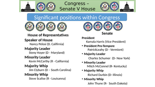 In the 117th United States Congress, the House of Representatives and the Senate are narrowly controlled by the Democratic Party. The Senate consists of 50 Republicans and 48 Democrats with two Independents who caucus with the Democrats; the House consists of 222 Democrats and 211 Republicans.