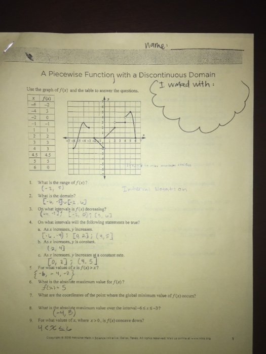 Piecewise defined functions worksheet answers