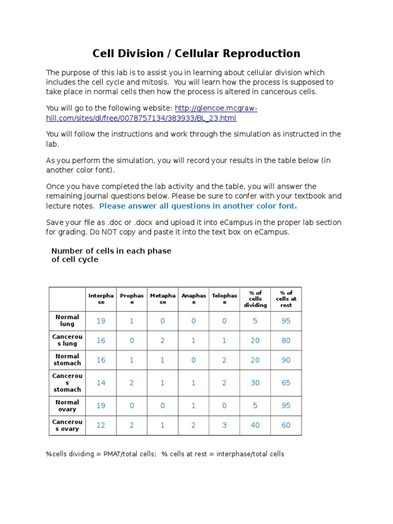 Virtual Lab Cell Cycle and Cancer Worksheet Essay - 929 Words In advance of referring to Virtual Lab The Cell Cycle And Cancer Worksheet Answers, you need to are aware that Schooling is usually the factor to an improved down the road, as well as discovering won't just quit once the