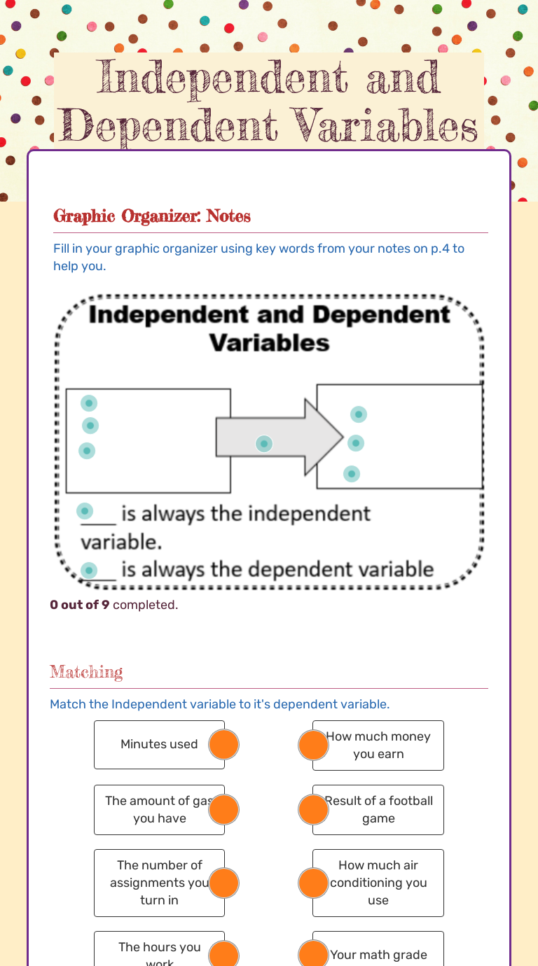 Independent and dependent variables worksheet