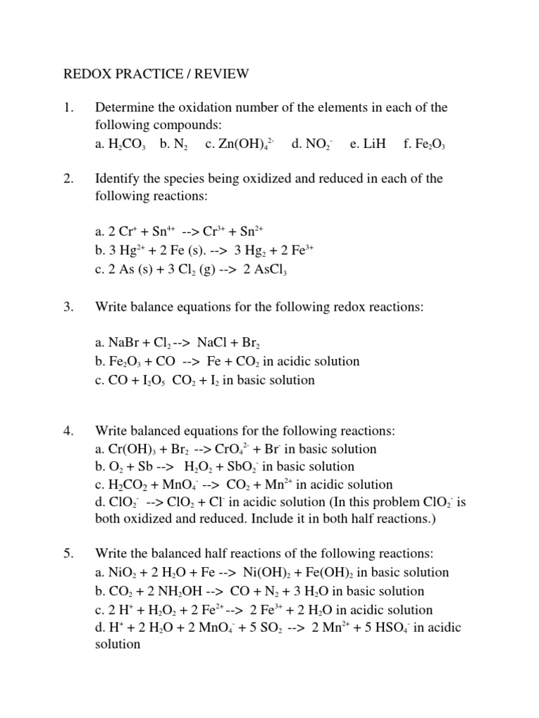 Oxidation and reduction practice worksheet