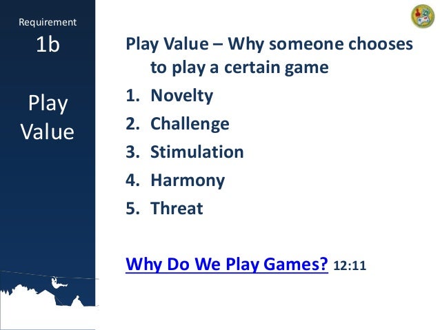 Game Design is the 131st badge on the active list and was officially added to the program on March 6st, 2013. Origin and Approval of the Merit Badge. The idea for a merit badge focusing on Game Design came from a board game enthusiast named Tom Miller in 2009. After spending four to six months just finding the right person to talk to at about. Design a new game. Any game medium or combination of mediums is acceptable. Record your work in a game design notebook. Write a vision statement for your game. Identify the medium, player format, objectives, and theme of the game. If suitable, describe the setting, story, and characters. Describe the play value. BSA Game Design Merit Badge Download Now Download. Download to read offline. Education, Entertainment & Humor, Design. Aug. 13, 2013 42,734 views David Mullich Follow Course Director, Game Production Program Recommended. Different types of games Rayna Monique #28 Creating Walkable Urban Thoroughfares: A New Urbanist Approach - Smith.