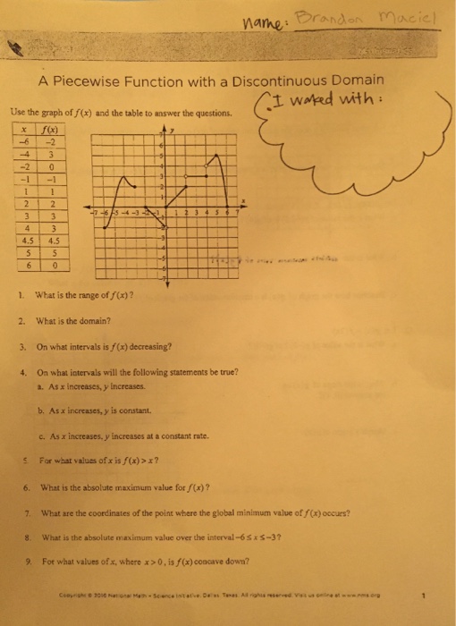 Answers Piecewise Functions Worksheet With Answers Getting the books piecewise functions worksheet with answers now is not type of challenging means. piecewise-functions-worksheet-with-answers 1/7 Downloaded from musicinfermanagh. 1b) What kind of discontinuity does f(x) have? 1c) On what open interval(s) is f(x) continuous? 2.