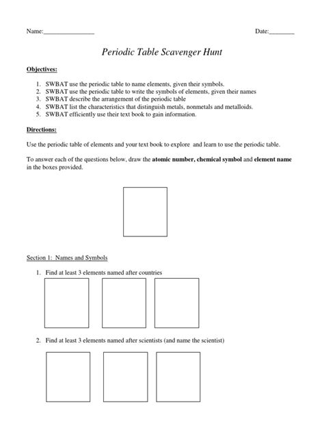 Periodic table scavenger hunt worksheet answer key