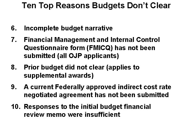Other important considerations for OJP include geographic diversity, strategic priorities, and available funding, as well as the extent to which the Budget Detail Worksheet and Budget Narrative accurately explain project costs that are reasonable, necessary, and otherwise allowable under federal law and applicable federal cost principles.