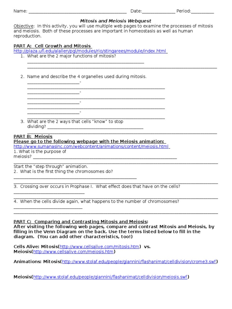 Jun 7, 2021 - Cell Alive Worksheet Answers Printable Worksheet Template. Jun 7, 2021 - Cell Alive Worksheet Answers Printable Worksheet Template. This includes what occurs in each of the phases, the products of each pathway, and the key differences between mitosis and meiosis.... 3.25 understand that division of a cell by meiosis produces ...