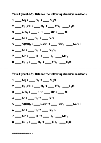 Chemistry unit 7 reaction equations worksheet 1 answers. Unit 7 chemical equations. Pearson prentice hall and our other respected imprints provide educational materials technologies assessments and related services across the secondary curriculum modeling chemistry unit 7 reaction equations worksheet 1 answers. Modeling Chemistry 1 U7 WS1 2013 Name Date Pd Chemistry - Unit 7- Chemical Reactions Balancing Reaction Equations Worksheet 1 Balance the following equations by inserting the proper coefficients. You must keep track of the total number of elements on each side of the equation by keeping a tally beneath each reaction.
