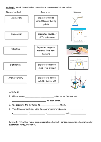 This separating mixtures worksheet will help students understand the various applications of separation methods techniques in separating constituents. One slide includes hook questions to get the students thinking before the information is presented. Add to my workbooks 2 download file pdf embed in my website or blog add to google classroom.