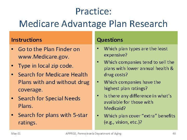 Plan Finder Worksheet. Enrolling in Medicare for the first time? Use this worksheet to help you figure out which type of Medicare plan might be right for you and to compare plans in your area side-by-side. Download PDF or view below. Shop Plans Medicare Advantage Plans. Dual Special Needs Plans. Medicare Plan Finder Worksheet 2014 You can use this worksheet to collect all the personal information you need to find a Medicare health and/or drug plan that meets your needs. Once you complete this worksheet, you can talk with a SHIP counselor by calling 888-696-7213 , call Medicare at 800-MEDICARE ( 800-633-4227 ), or visit the medicare.gov. Medicare Plan Finder worksheet A free, unbiased service of Calrima Financial and Insurance Agency, the Statewide Health Insurance Benefits Advisors provides consumers with information about their Medicare Plan and Part D prescription drug options. The following worksheet provides us with the necessary information we need to create a report for you.