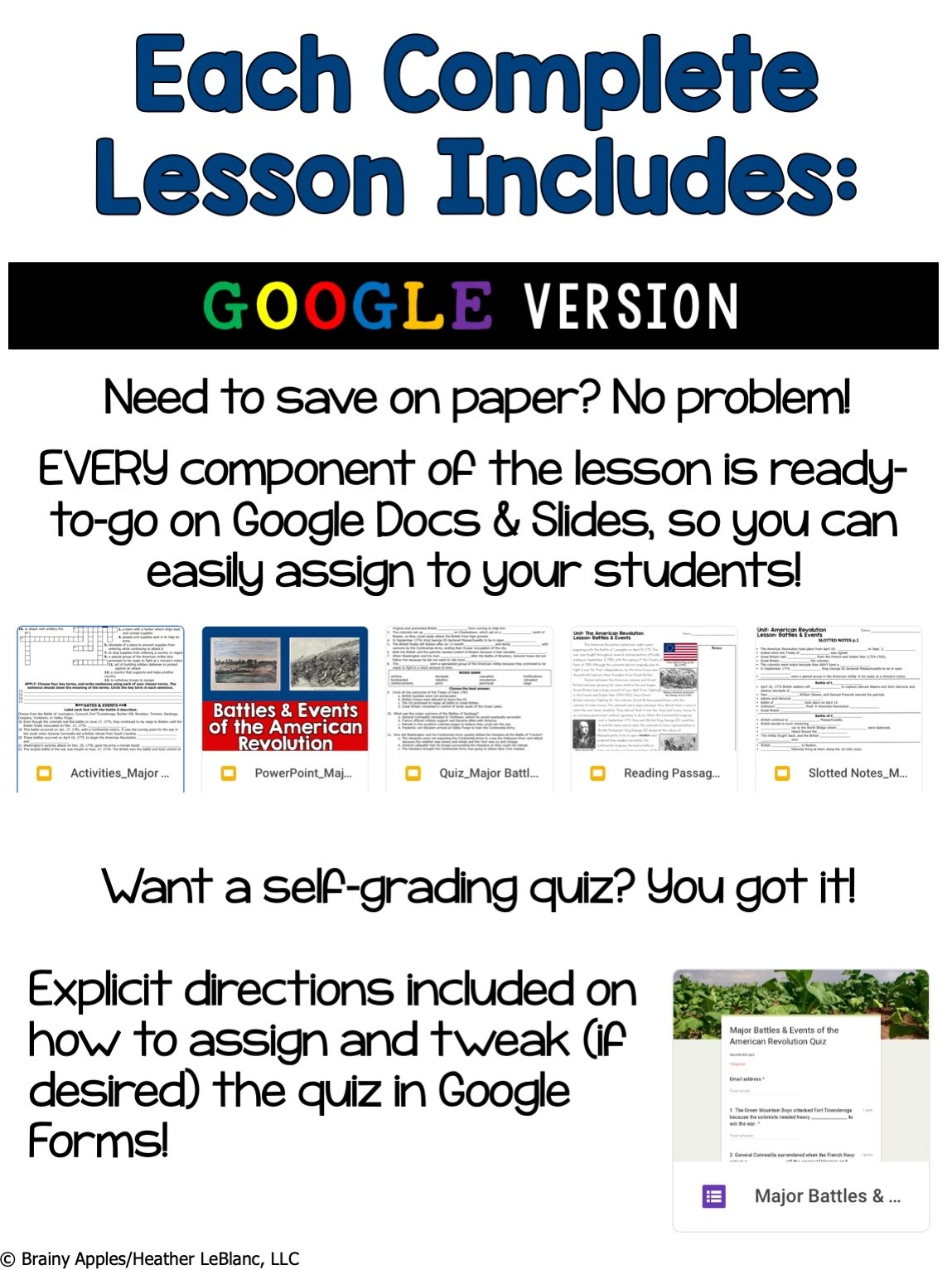 Publications, we would like to welcome you to American Revolution Battles in North, one of nine lessons in our American Revolution Unit. This lesson was designed by teachers with you and your students in mind. THE FORMAT Our goal is a lesson that you can use immediately. No comprehension questions to write, activities to