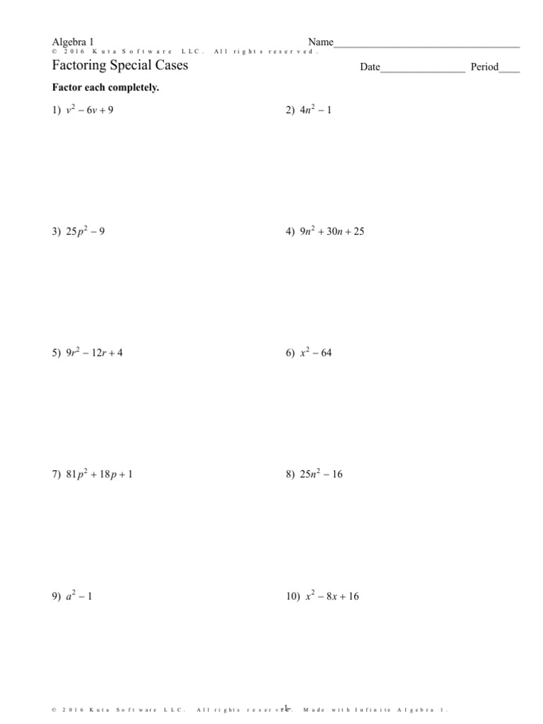 ©g X2S0F1F5b JKNuMt]aG bS_okfmtJwCadrHel iLELwCZ.o q oAslSli NrwiKgphJtasj LrPe^sfeVrjvweSdx.O W zMHaedSe] fw_iUtRh_ wIknSfwi]nQibtfeo mAclZgXebbIrTax S1A. Worksheet by Kuta Software LLC Algebra 1 Factoring Day 2 Name_____ ID: 1 Date_____ Period____ Free Algebra 1 worksheets created with Infinite Algebra 1. Printable in convenient PDF format.