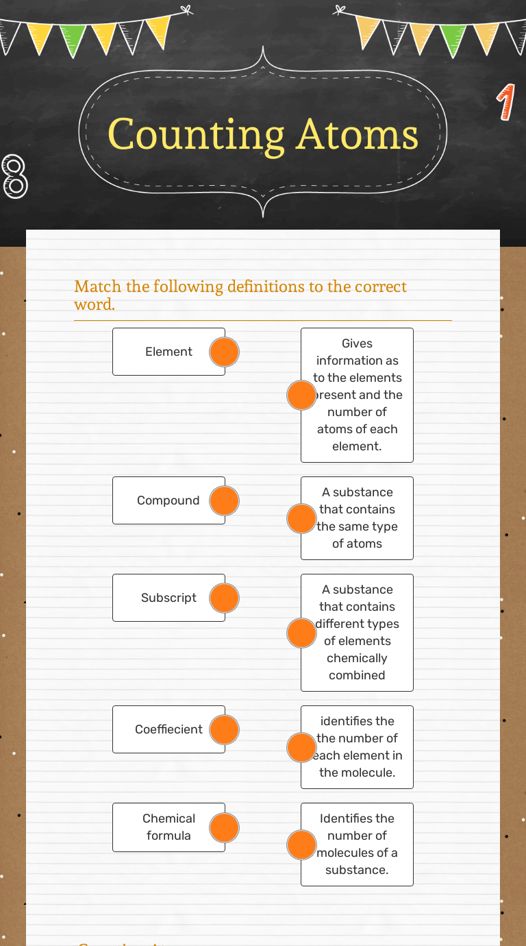 Practice balancing chemical equations with this game! Thomas Jefferson National Accelerator Facility is managed by. Jefferson Science Associates, LLC for the U.S. Department of Energy At the end of this counting atoms and elements lesson plan, students will be able to recognize that chemical formulas are used to identify substances and ... CHEMISTRY: COUNTING ATOMS IN COMPOUNDS WORKSHEET #7.0.1. INSTRUCTIONS: Write the quantity of atoms of each element opposite the formula of the.4 pages