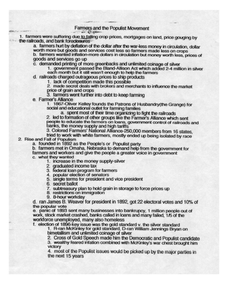 Chapter 5 Section 3 Farmers and the Populist Movement! (College Prep) (This may be taught with chapter 5 or chapter 9) 34 Terms. Rebecca_Frei. Ch. 5.3 Farmers and the Populist Movement 17 Terms. Rebecca_Frei. Farmers and The Populist Movement 26 Terms. Jasmandeep-Kaur. OTHER SETS BY THIS CREATOR. for the difficulties faced by 19th-century farmers in Kansas. After you have finished discussing the first two questions, have students share their answers to the Graphic Organizer. Follow up by reviewing their answers to the assigned essay. The question covering the Populist Party platform is more likely to provoke a productive discussion. Chapter 5 section 3 farmers and the populist movement worksheet answers By the end of this section, you will be able to: Understand how the economic and political climate of the day promoted the formation of the farmers' protest movement in the latter half of the nineteenth century Explain how the farmers' revolt moved from protest to politics The challenges that many American farmers ... Acces PDF The Populist Movement Value Of Third Parties Worksheet Answers Leaders of the alliance movement realized that to make far-reaching changes, they would need to build a base of political power. Populism—the movement of the people—was born with the founding of the Populist, or People’s, Party, in 1892. On