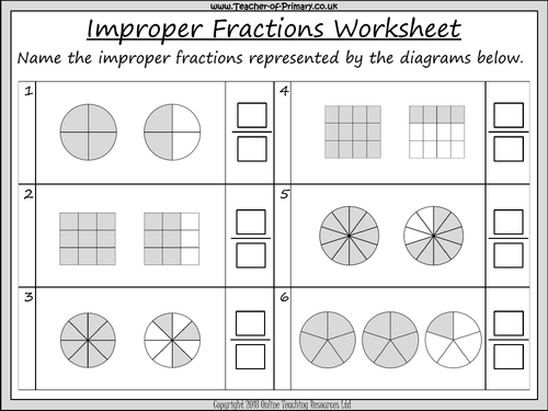 Mixed numbers & improper fractions. Subject: Mathematics. Age range: 7-11. Resource type: Worksheet/Activity. Mixed Numbers To Improper Fractions Worksheets With Pictures - Improper fraction sums are employed in many aspects of mathematics, not just arithmetic. You can possibly know the idea powering this if you are learning how to understand Calculus or other innovative math. Tag: improper fractions to mixed numbers with pictures worksheet Improper Fractions Into Mixed Fractions Worksheet November 5, 2021 January 3, 2022 · Improper Fraction by admin