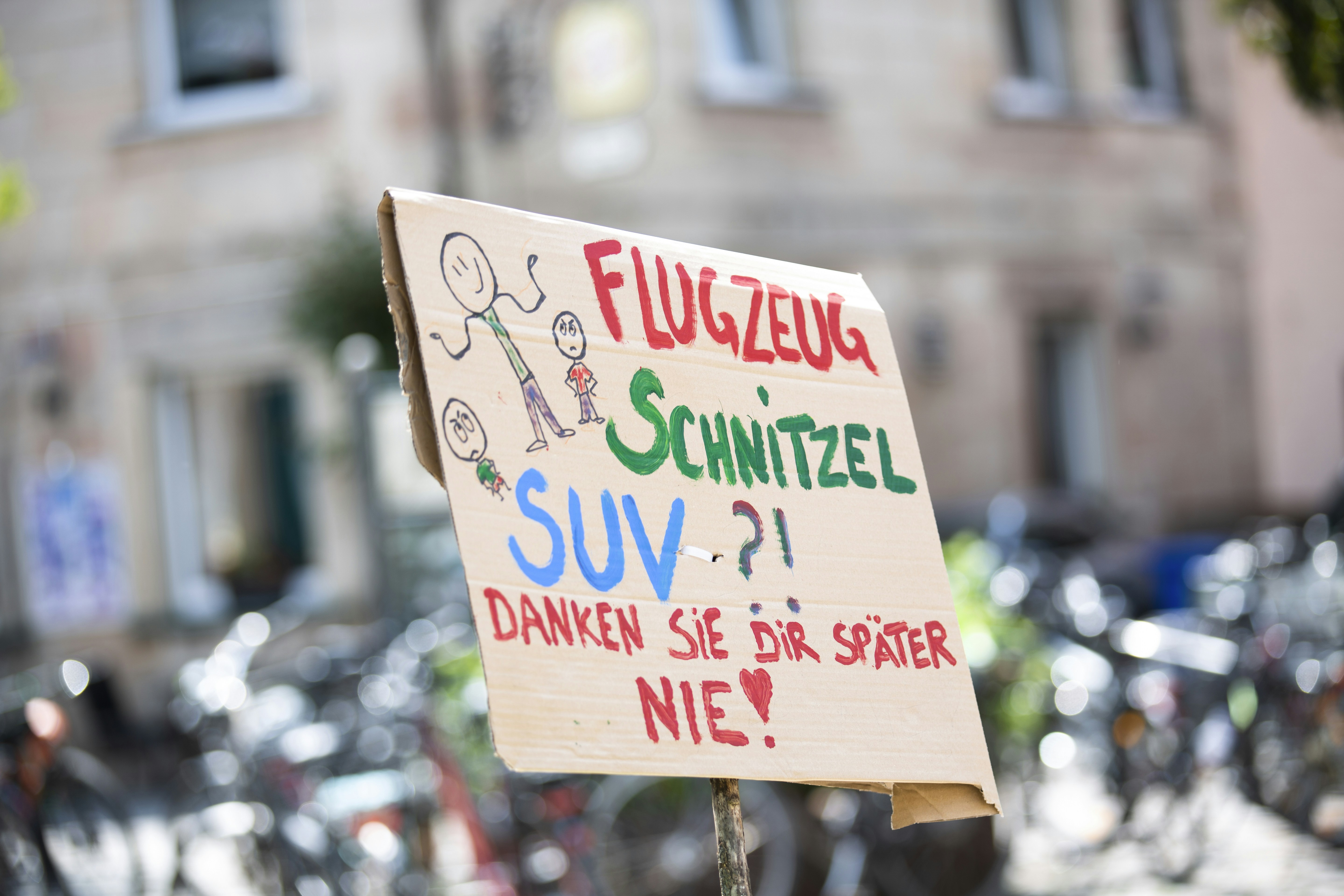 Flugzeug, Schnitzel, SUV?! Danken Sie dir nie â¥. Flights, meat and SUV ?! Never thank you â¥. Fridays for future - global climate strike demonstration