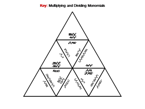 This is a bundle of 11 worksheets on multiplying and dividing monomials.Worksheet 1: Multiplying Monomials 1Math Toon. No negative exponents or powers. Single variable.Worksheet 2: Multiplying Monomials 2Riddle. No negative exponents or powers. Up to 2 variables.Worksheet 3: Multiplying Monomi.
