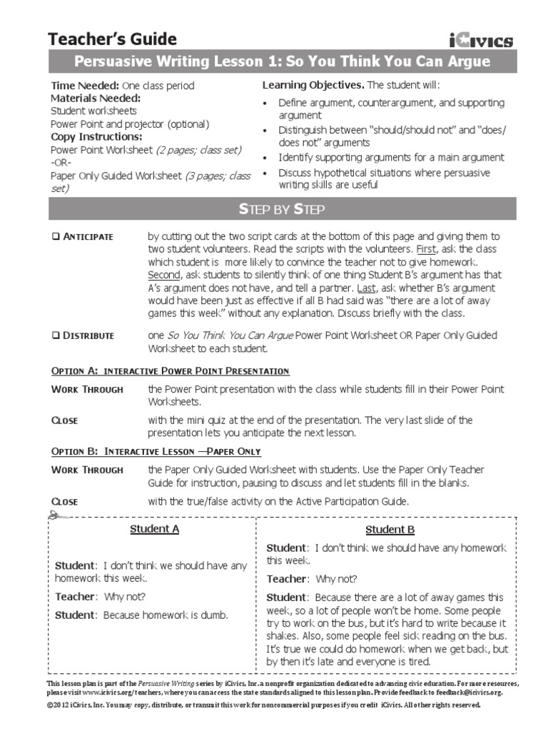 suggest teaching the iCivics lesson “You Mean I've Got Rights?” the day before your class plays the game. You can find that and all of our lesson plans at ...6 pages