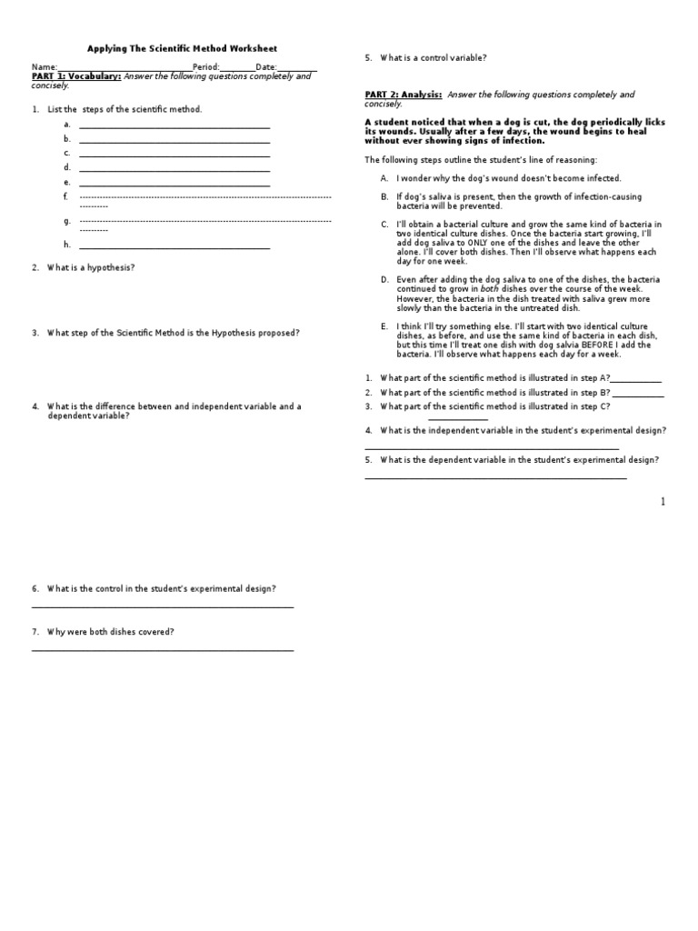 Applying the scientific method worksheet. Test your knowledge on the scientific method and how it can be applied to environmental problems using this interactive quiz and printable... 4 Aug 2021 — The ancient Greek philosopher Aristotle was among the first known people to promote that observation and reasoning must be applied to figure out ...4 pages Download our free scientific method worksheet. ... Implementing the scientific method in your at home & fun science experiments, is a great way to reinforce ... 27 Jul 2021 — Let's walk through an example to see how the steps of the scientific method are applied. This example comes from the soon to be released chapter ...