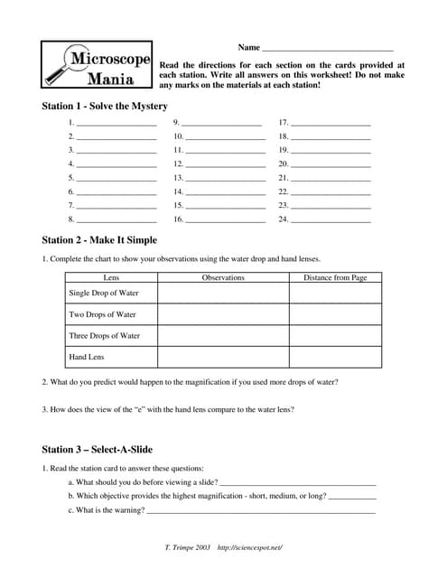 Student Worksheet (pdf) - Student worksheet for the Microscope Mania station cards. Microscope Mania Puzzles (pdf) - Two puzzles related to the world of microscopes - a word search and make-a-word challenge. I provide this worksheet with the student worksheet for the stations, so students can work on the puzzles using any extra time they have ...