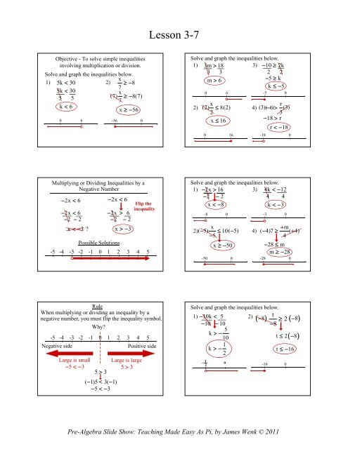 Solving Inequalities Worksheet 1 Here is a twelve problem worksheet featuring simple one-step inequalities. 1 If you multiply or divide by a negative number you must switch the sign. Two step inequalities date period solve each inequality and graph its solution. 12302016 101205 AM. Dividing by a negative means switch the sign.