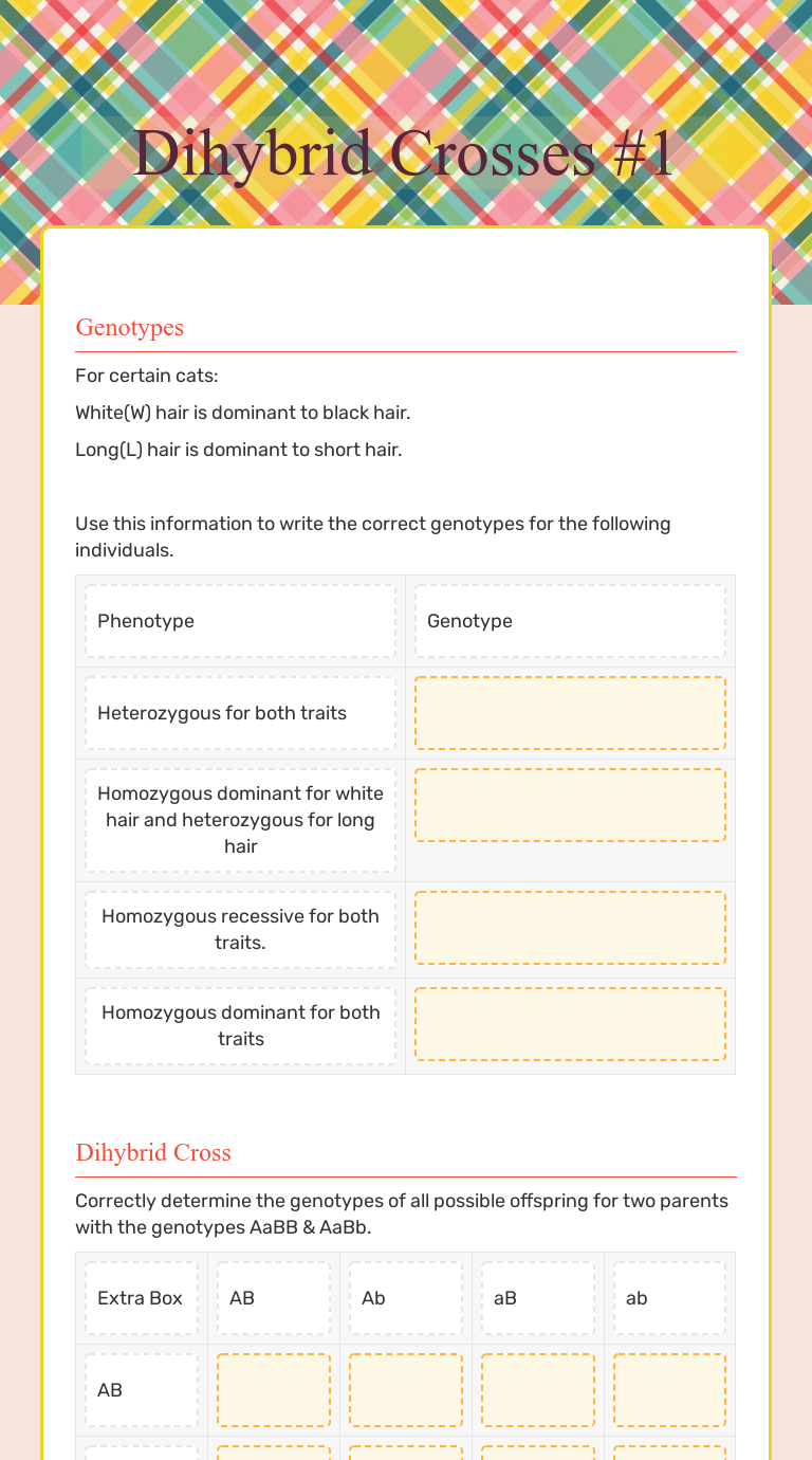 Dihybrid cross worksheet answers