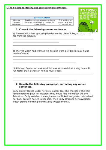 Run on paragraph worksheet