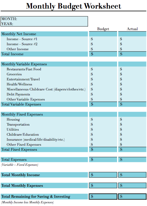 Monthly Household Expenses Worksheet - Sixteenth Streets Monthly Household Expenses Worksheet. It can be a monthly household budget worksheet or an annual household budget worksheet. This excel template can help you track your monthly budget by income and expenses. Monthly Household Budget Worksheet Free Printable from This is an accessible household monthly budget template. Use this budget worksheet to get control Monthly budget template: Track your spending by month ... 2. Document your expenses, both fixed and variable. Your fixed expenses would include things such as your mortgage, car payments, student loans, and so forth. These expenses remain relatively constant month after month. Variable expenses, on the other hand, are those that either only pop up every few months, or fluctuate in cost month to month. Free Blank Budget Worksheet Printables to Take Charge of ... Fixed expenses Variable expenses Your fixed expenses stay the same month to month. These are things like car payments, mortgage/rent, phone bill, Netflix, and insurance. Your variable expenses are expenses that change from month to month. These are things like groceries, utilities, clothes, eating out, entertainment, and transportation costs. Free Home Mortgage Calculator for Excel - Vertex42.com Description. This Excel spreadsheet is an all-in-one home mortgage calculator.It lets you analyze a fixed or variable rate home mortgage. You can set up periodic extra payments, or add additional payments manually within the Payment Schedule.Use the spreadsheet to compare different term lengths, rates, loan amounts, and the savings from making extra payments.